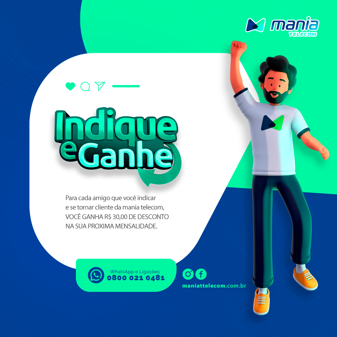 “Faça parte da Mania Telecom, indique amigos e ganhe R$30 de desconto!” Indique